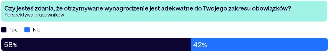Jak wynika z badania Hays Poland, aż 61 proc. specjalistów i menedżerów deklaruje, że nie jest zadowolonych ze swojego wynagrodzenia. Co więcej, 42 proc. profesjonalistów uważa też, że nie jest ono adekwatne do obecnego zakresu obowiązków. W rezultacie przekłada się to na spadek motywacji, poczucie przeciążenia i nierzadko rozważania możliwości zmiany pracy.